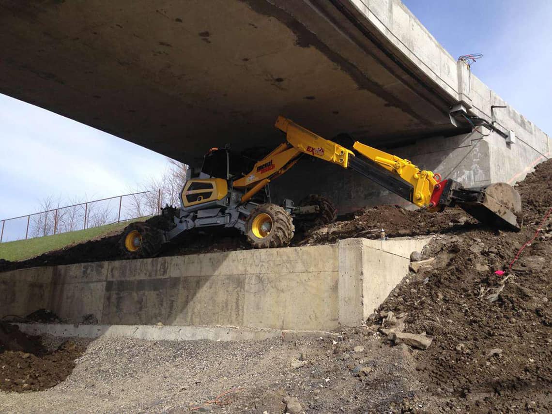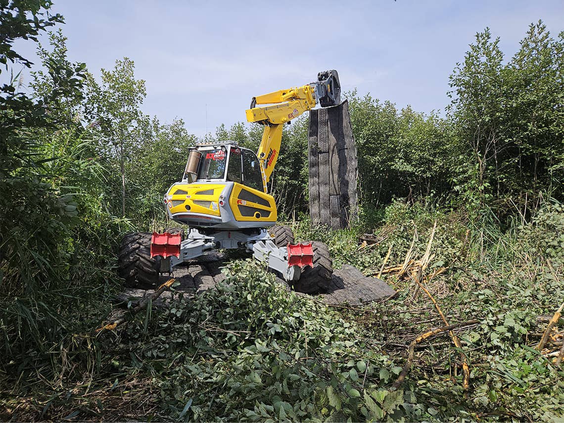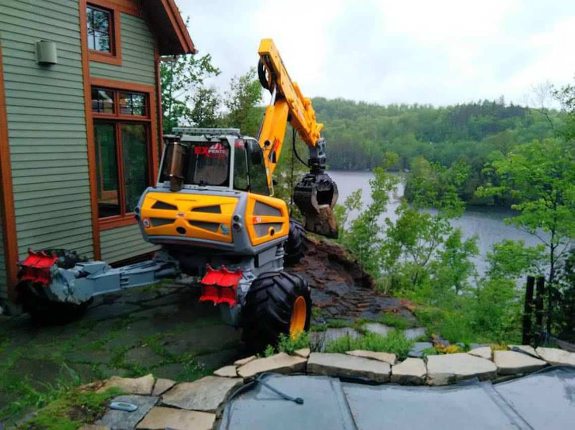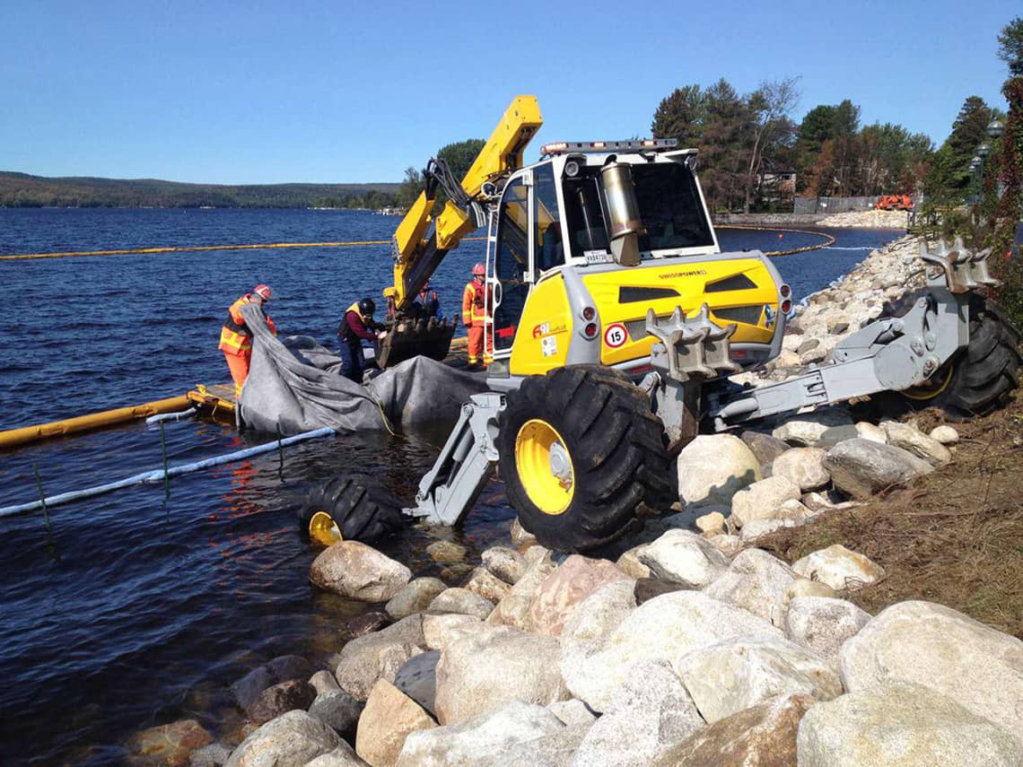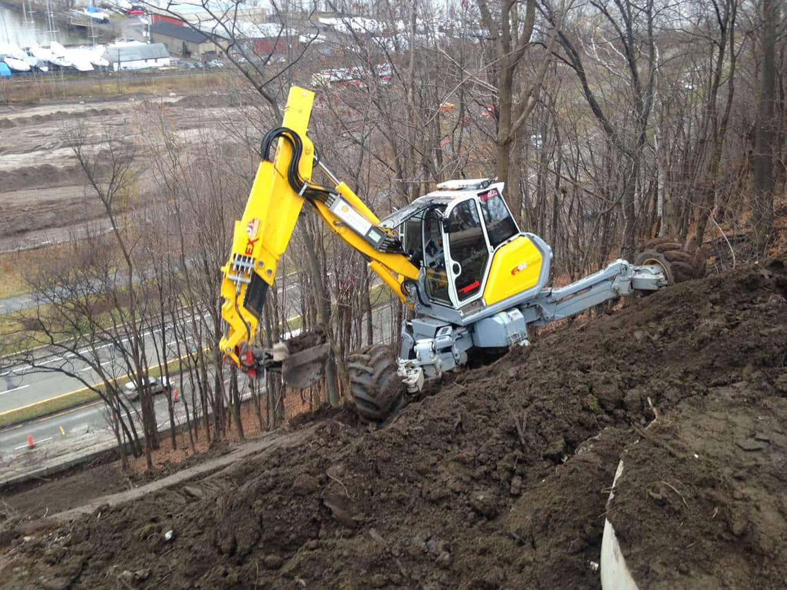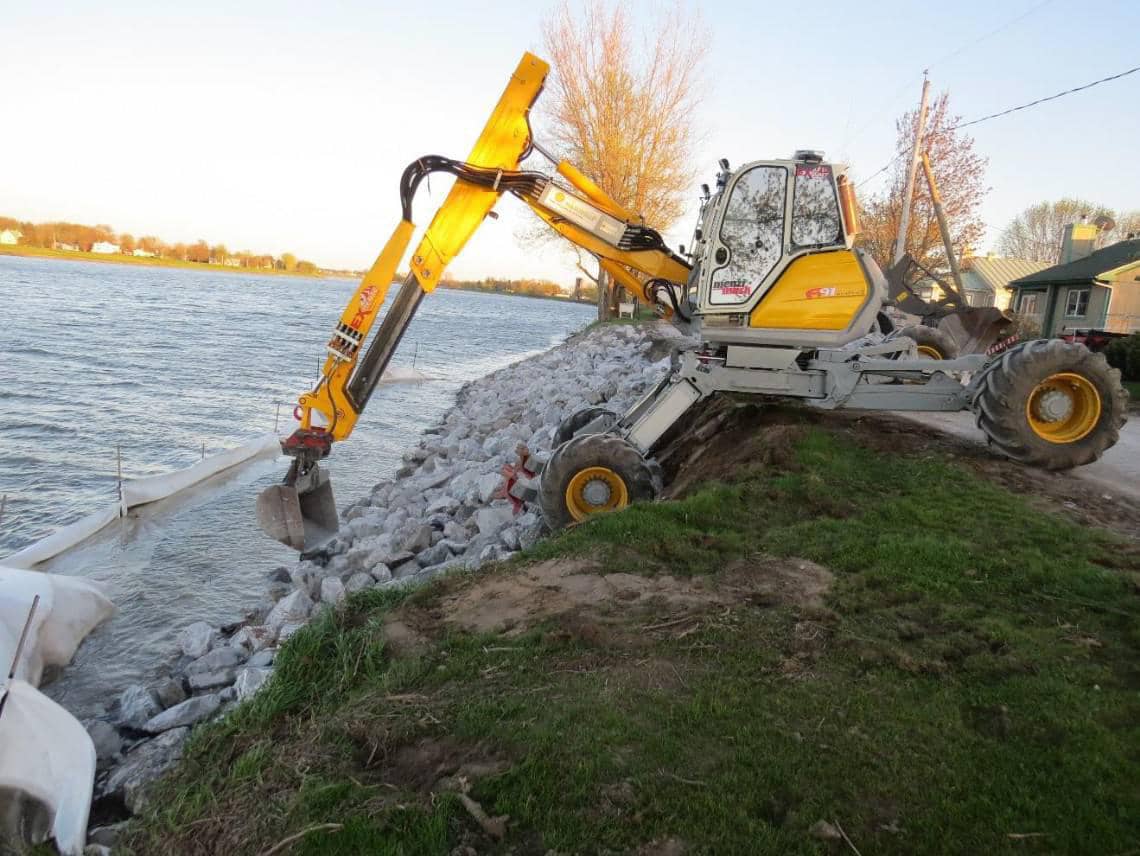 travaux avec pelle araignée et de notre engagement à surmonter les défis géographiques les plus complexes au Québec, de la