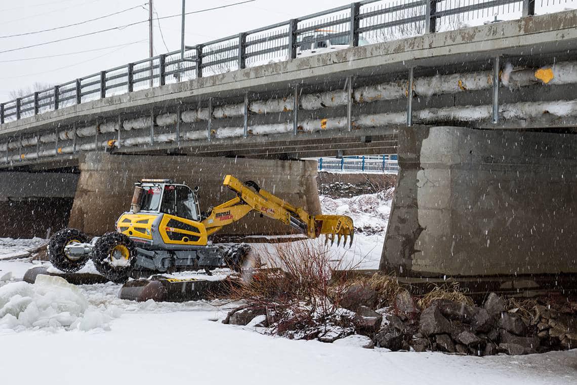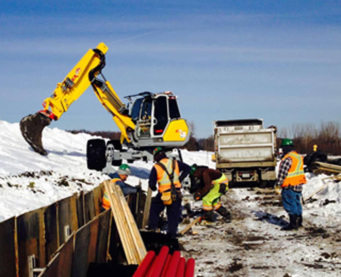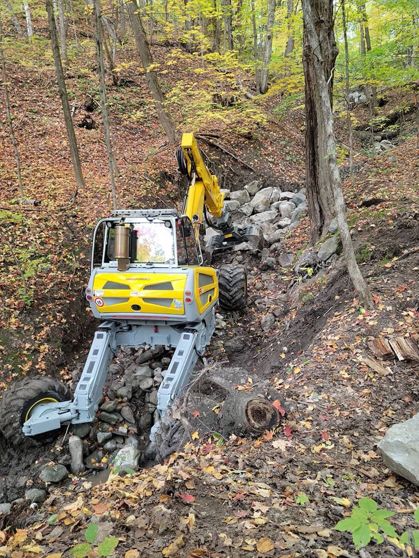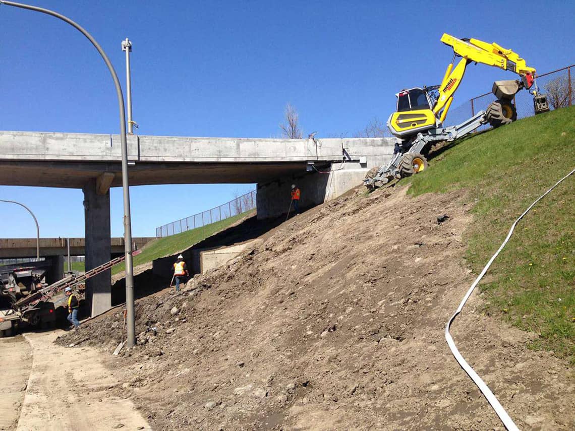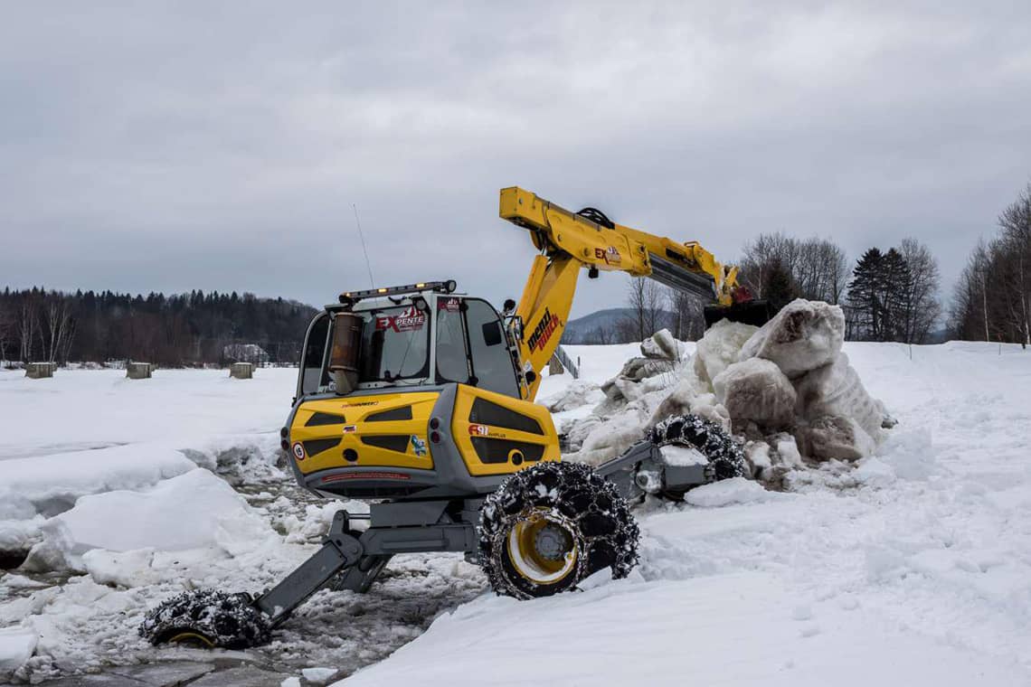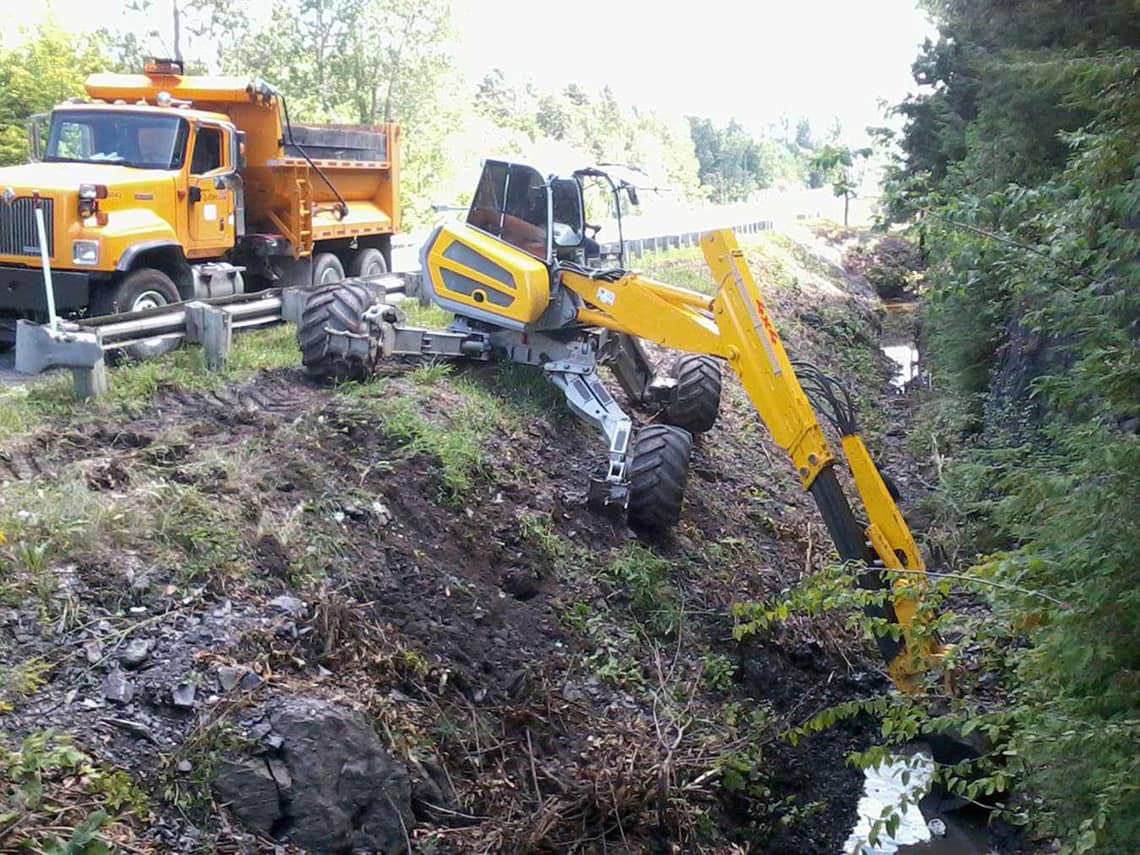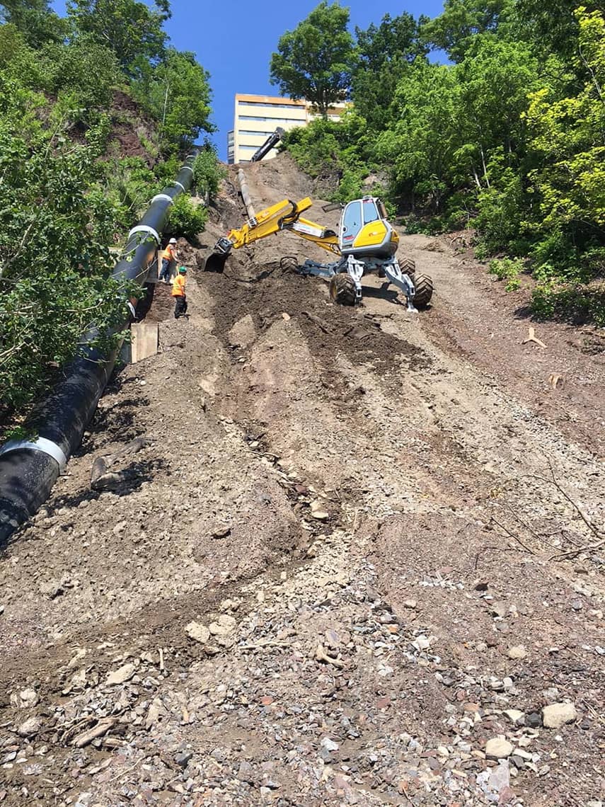 travaux avec pelle araignée et de notre engagement à surmonter les défis géographiques les plus complexes au Québec, de la