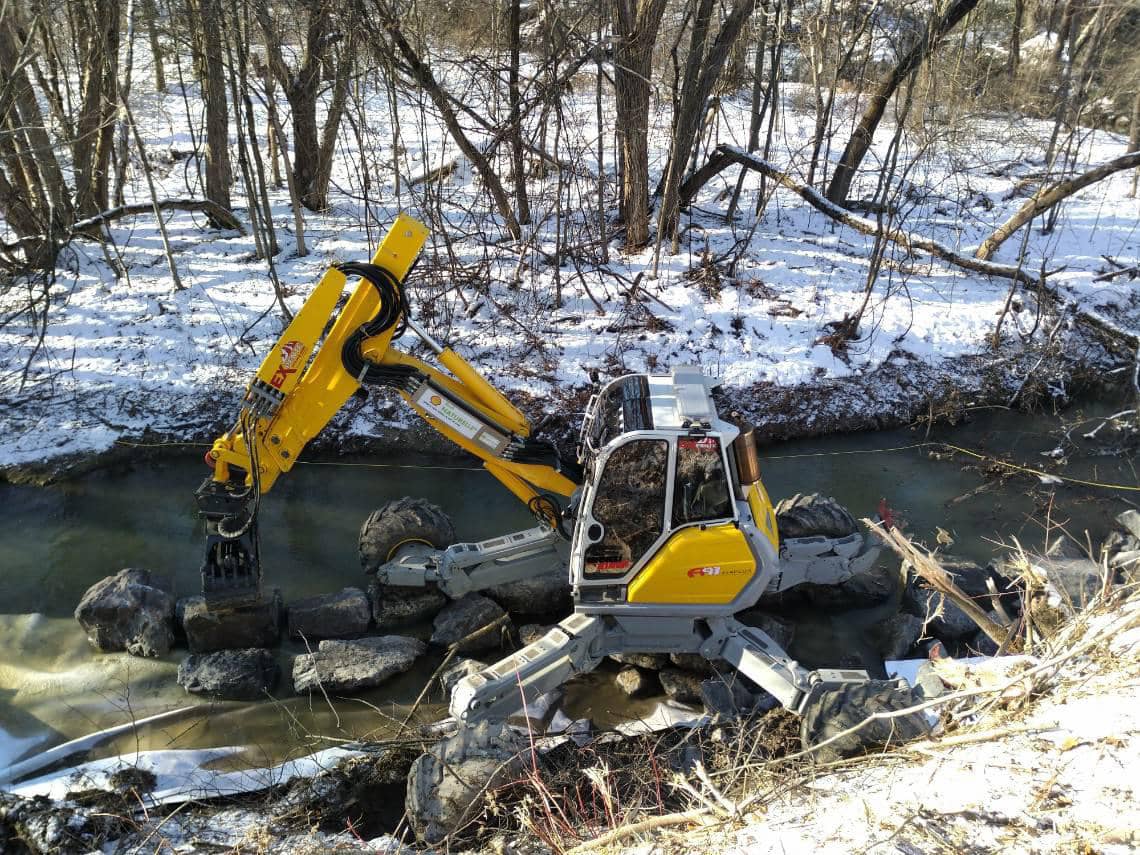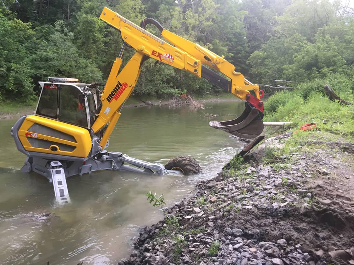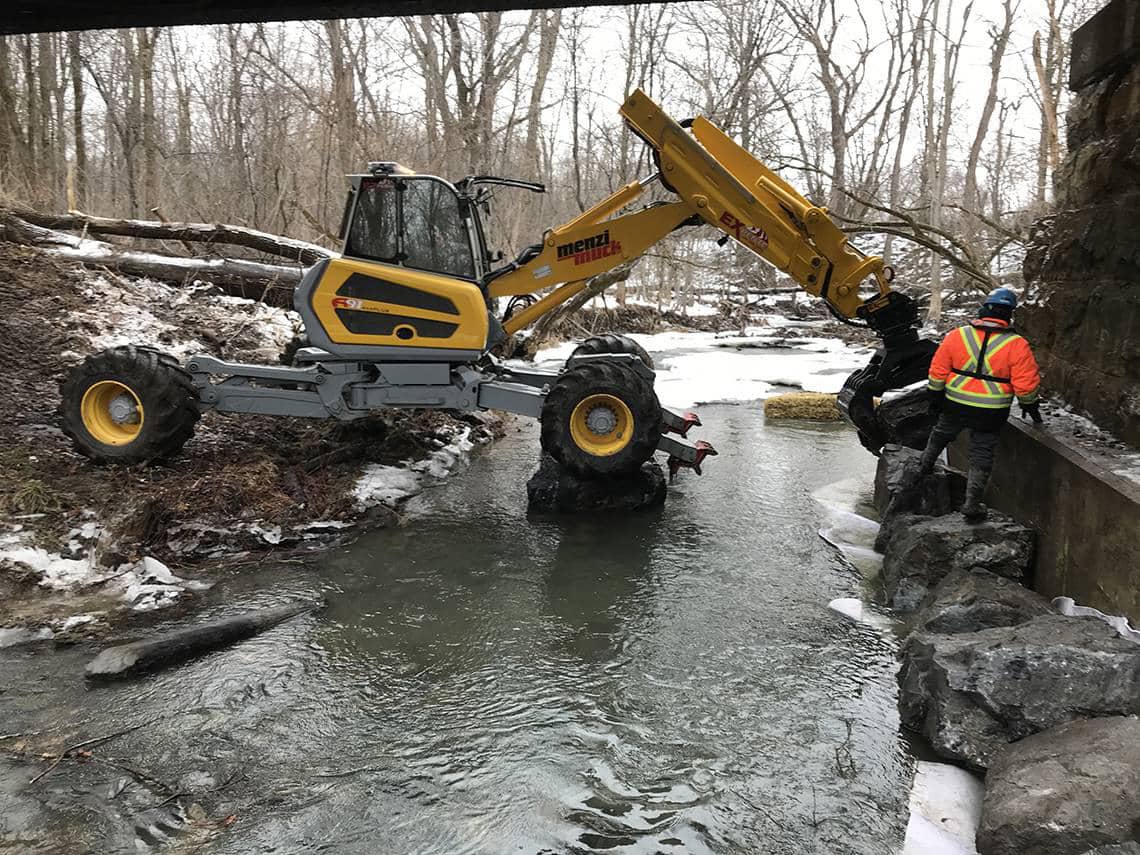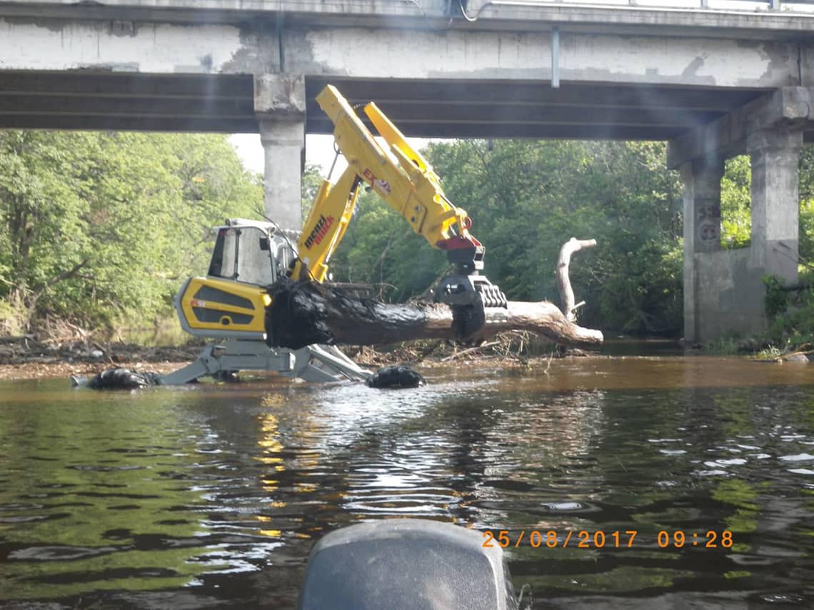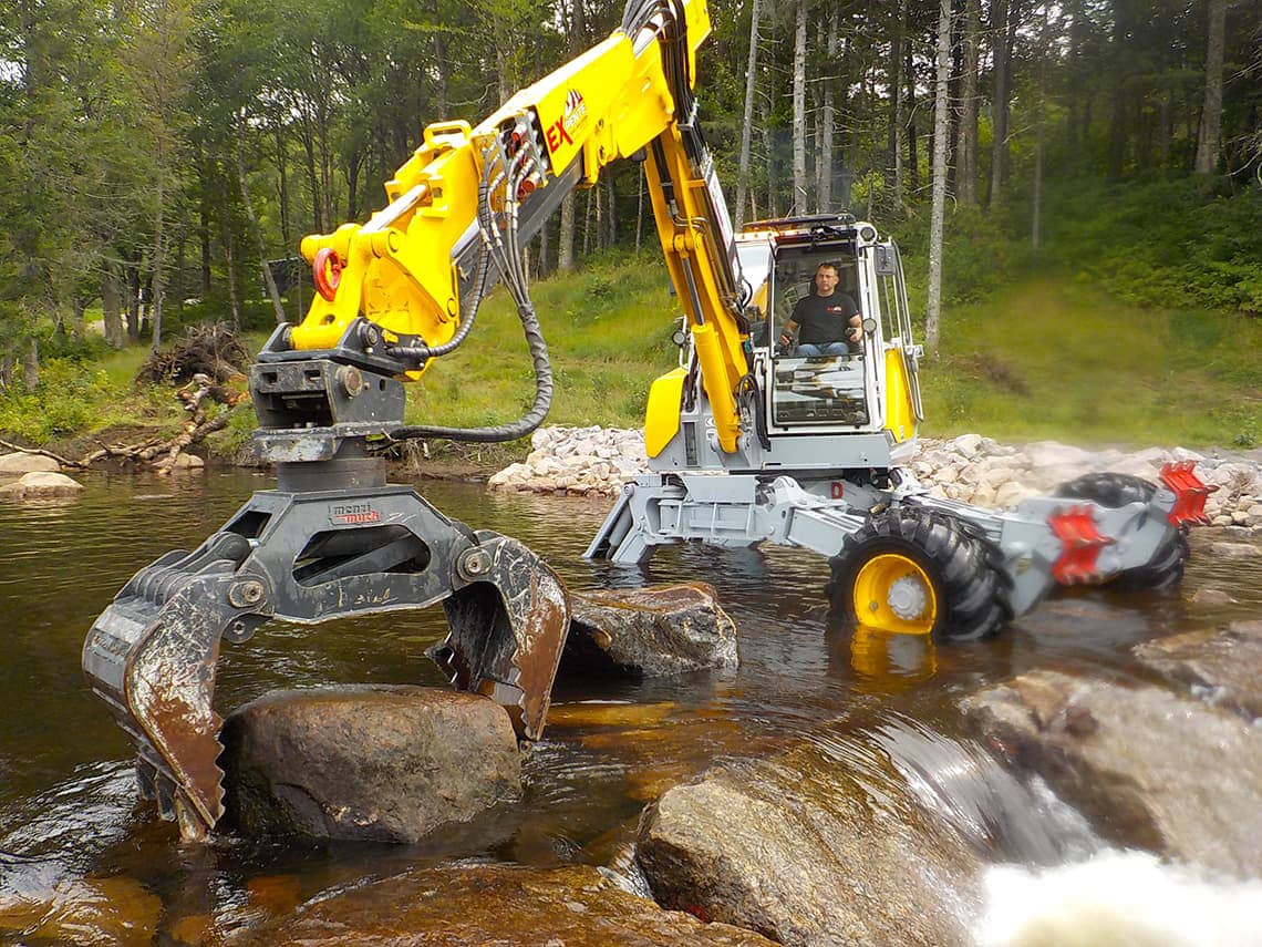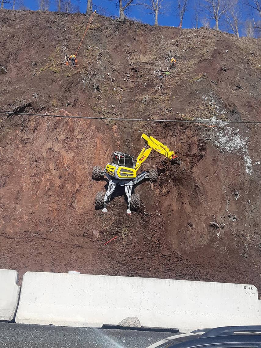 travaux avec pelle araignée et de notre engagement à surmonter les défis géographiques les plus complexes au Québec, de la